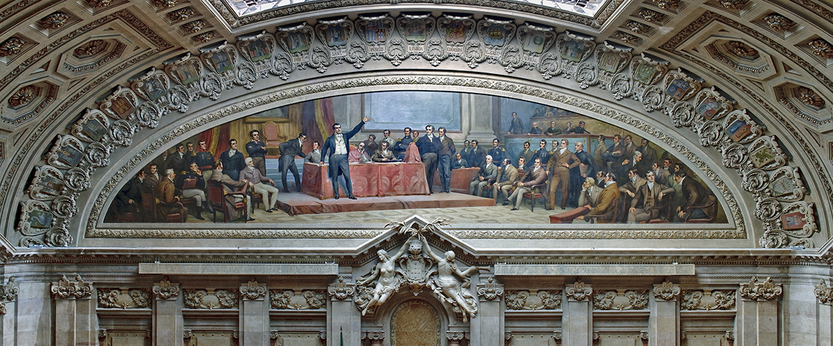 Pormenor da pintura de Veloso Salgado representando as Cortes Constituintes de 1821. Sala das Sessões da Assembleia da República.